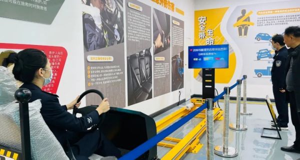 駕駛位置安全帶機(jī)構(gòu)和虛擬場(chǎng)景的模擬重現(xiàn),通過滑軌加速度模擬真實(shí)的撞擊感受,模擬安全氣囊正常打開,從而起到保護(hù)作用。讓參觀者真實(shí)體驗(yàn)到安全帶在駕駛過程中的重要作用及不系安全帶的危害。